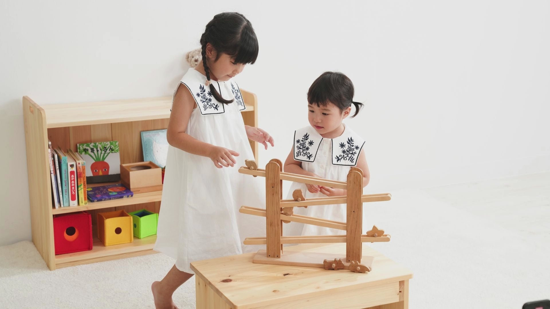 Watching the animals roll down the ramp sparks curiosity and supports visual tracking through simple, rhythmic movement. Carefully rounded and smooth to the touch, it’s designed for early play and made to be loved for years.