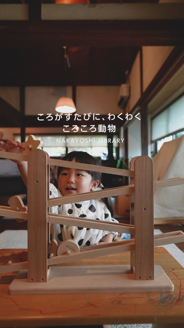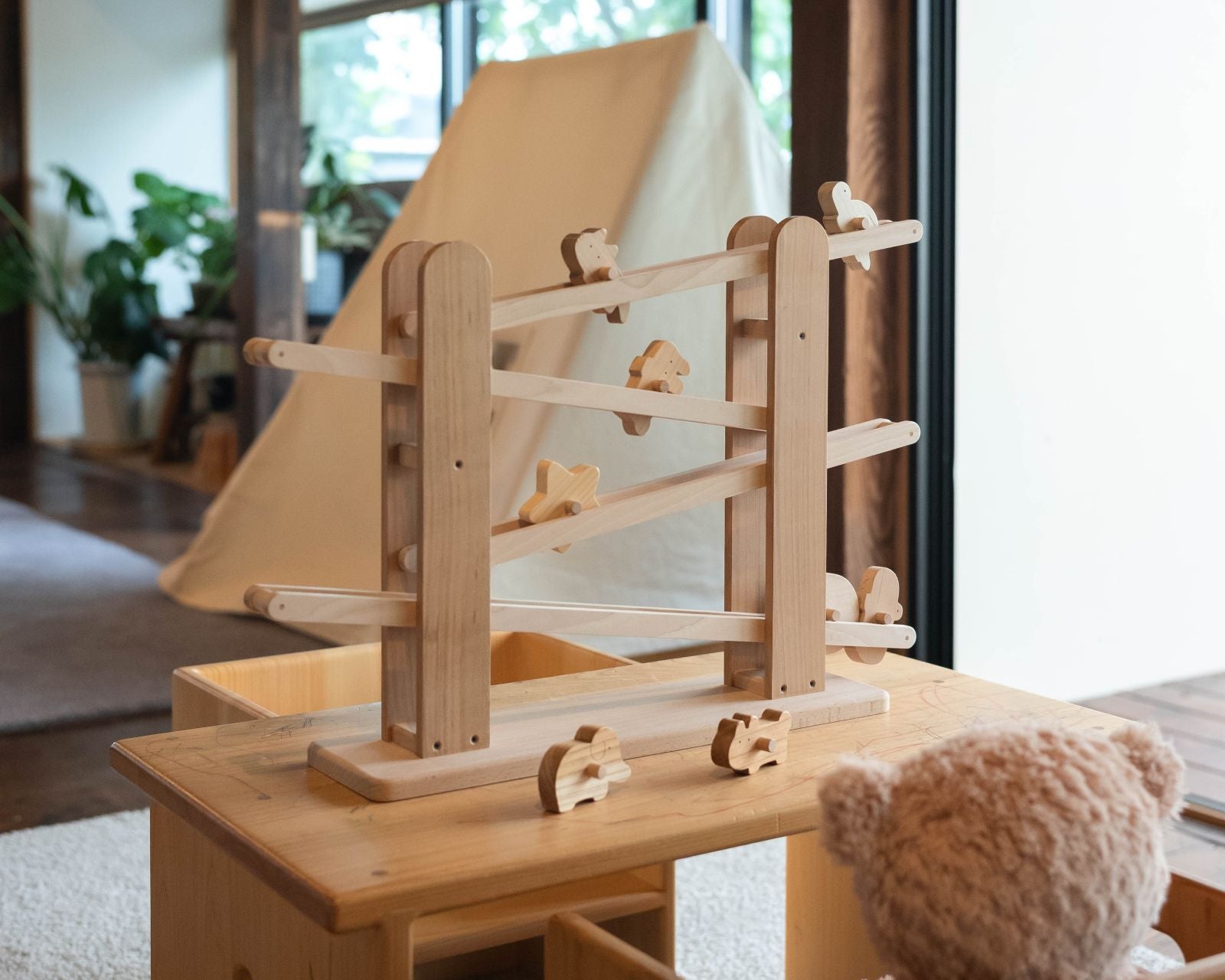 Wooden Rolling Animals is a gentle wooden ramp toy made from natural wood.