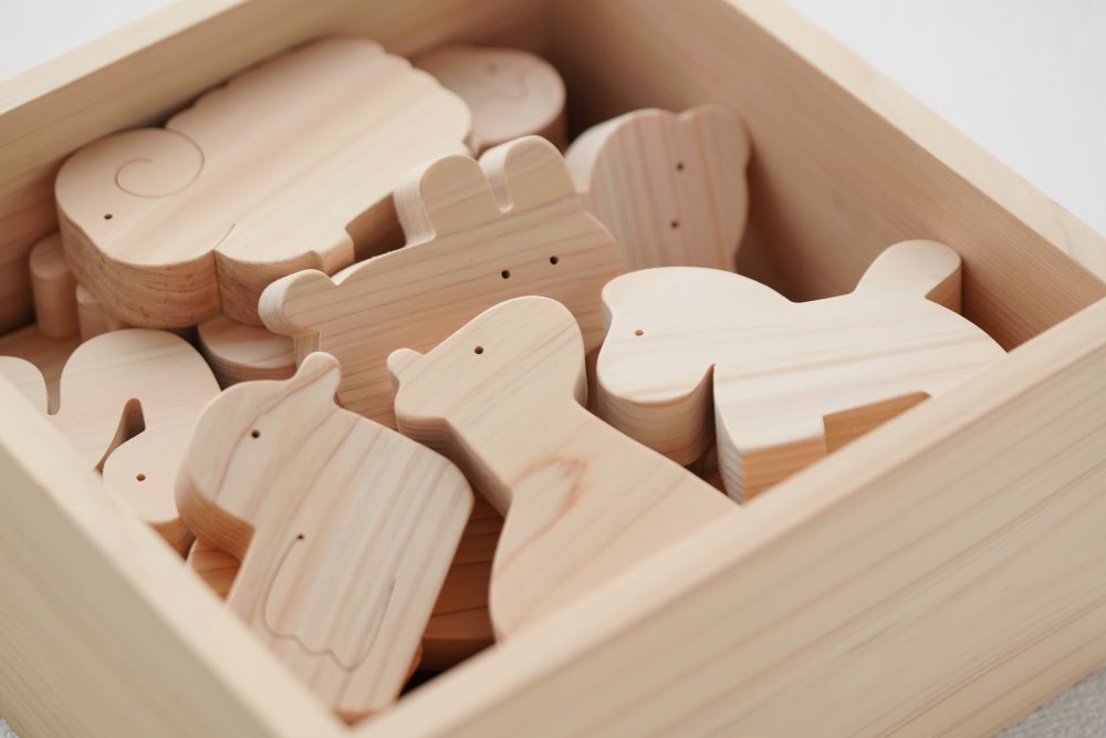 Hinoki cypress is naturally water-resistant, quick-drying, and durable. Even if the toys get wet, simply wipe them with a towel and allow them to air-dry in the shade.