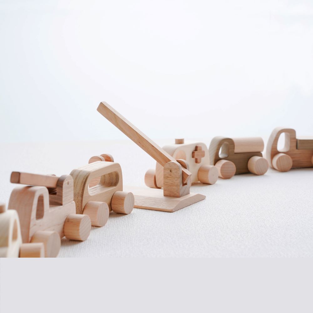 Each car is carefully handcrafted by artisans using locally sourced Japanese hardwood. Smoothly rounded edges make the cars easy and safe for small hands to grip, supporting long-lasting and safe play experiences.